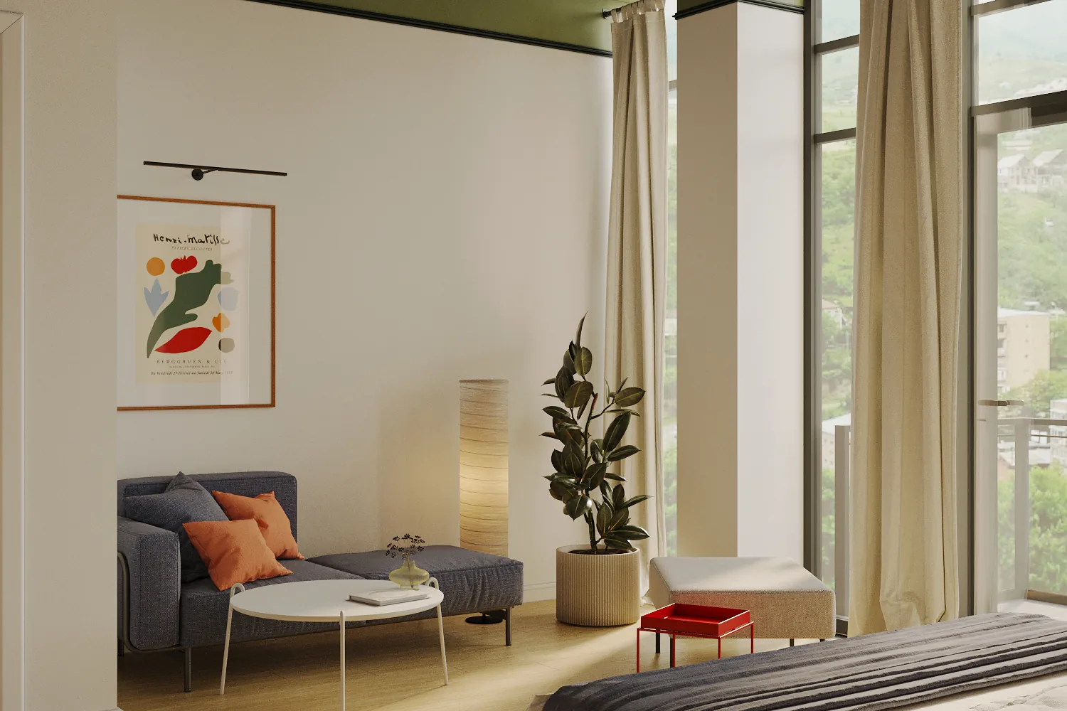 The interior design phase focuses on developing a language that reinforces the building’s integration with the natural context of Dilijan, while enhancing the co-living hospitality model at the heart of the Kantar brand.