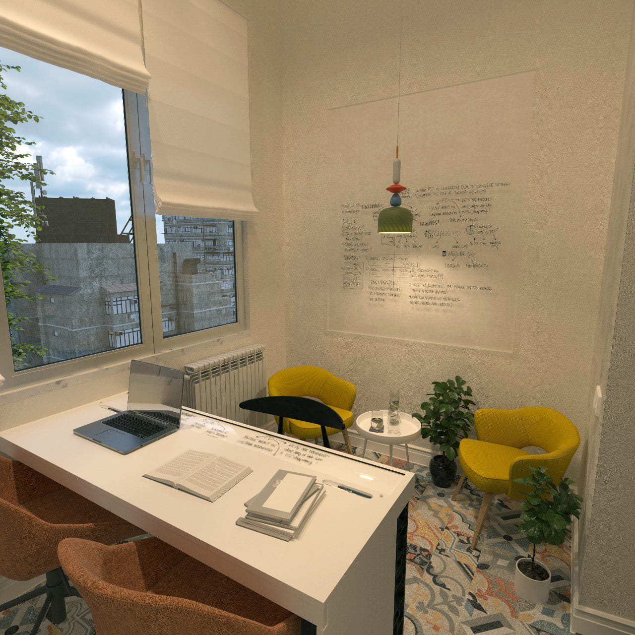 The space serves as the headquarters for FYM Ecosystem — a collaborative network uniting four independent companies under one roof. Instead of following a standard office typology, we envisioned a space that feels like home: a warm, informal, and human-centered environment that fosters both focused work and organic communication.