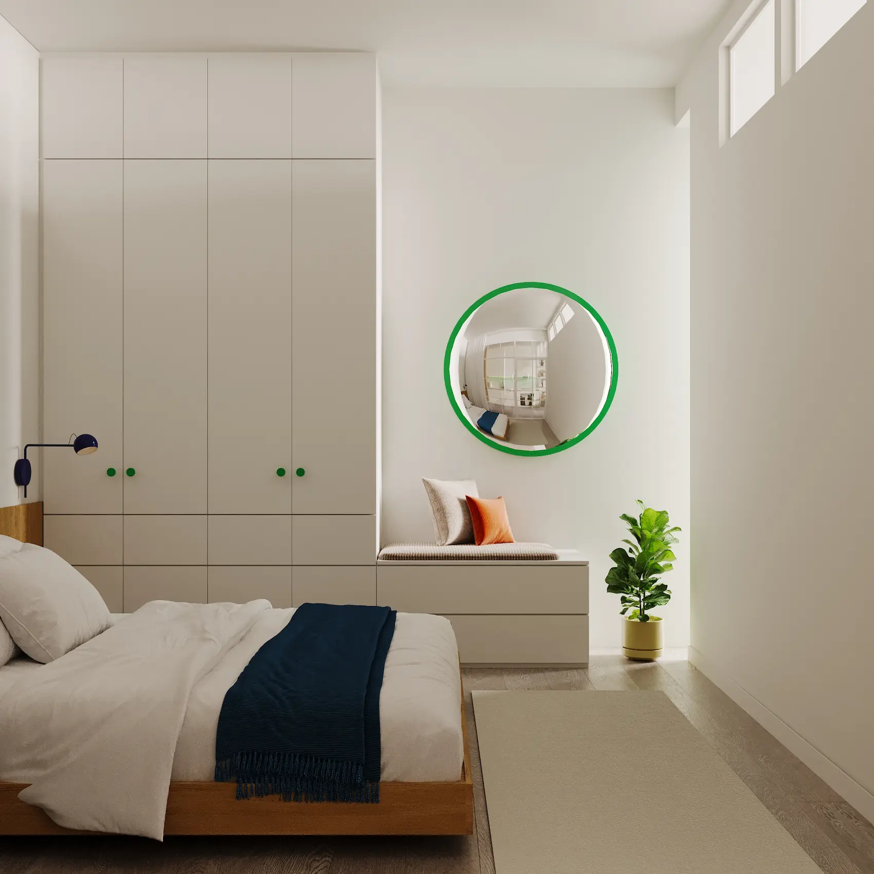 Each unit balances compact spatial planning with a sense of openness, using light, color, and built-in elements to define zones without closing them off. Finishes are practical yet vibrant, supporting long-term comfort without sacrificing visual energy.